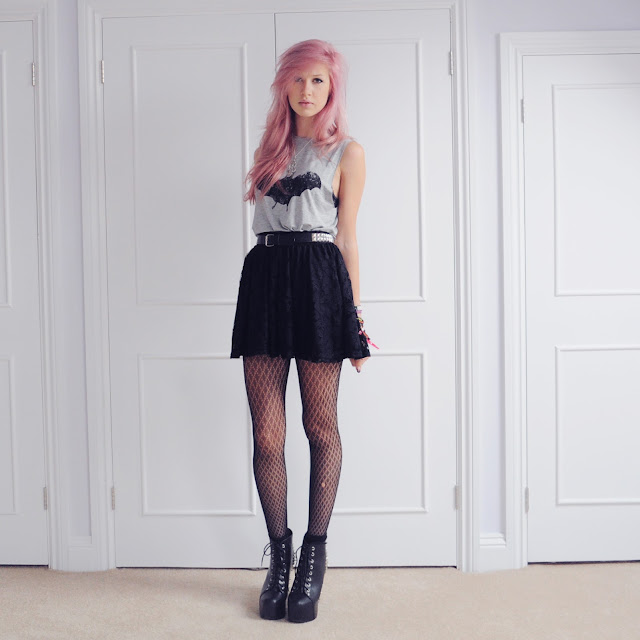 ReplyDeleteThe bat tee is gorgeous and the lace skirt is beautiful :o